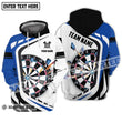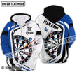 Unisex Shirt - Personalisiertes Namens- und Teamname-Shirt, Schwarz-Weiß- und Blau-Farben-Darts-Liebhaber-Shirt