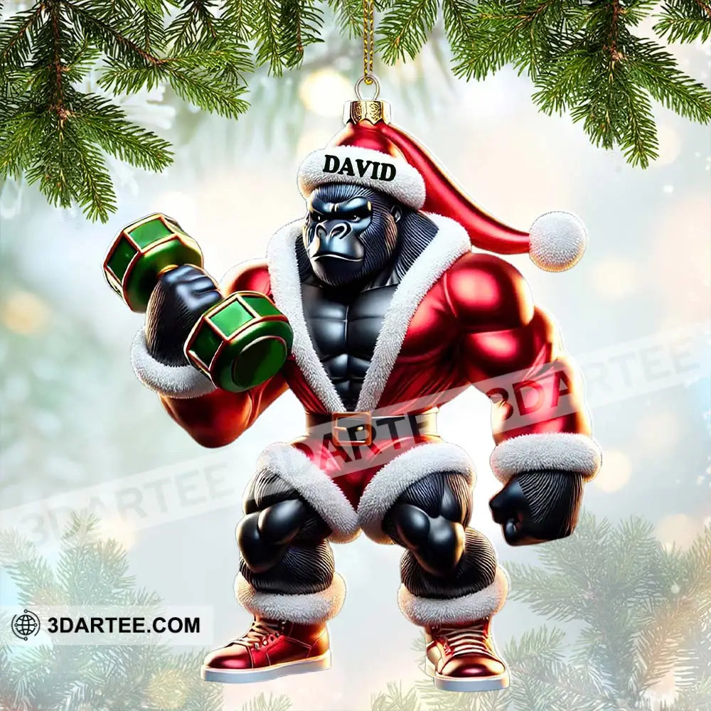 Black Kong Dumbbell Lift Christmas Ornament, Personalized Ornament