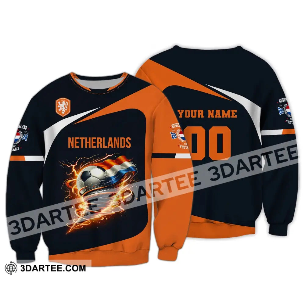 Unisex Shirt, Custom Name and Number Netherlands Euro 2024 Football Shirt, Netherlands Football Polo Long Sleeve